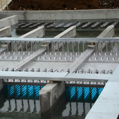 Biolight S.A. suministra el sistema completo en acero inoxidable 304/316L para ser instalado en un canal construido en concreto (o fibra de vidrio) por el cliente (bajo especificaciones de Biolight).