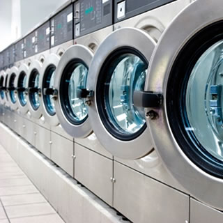 Industrial laundries : Reuse of final rinse water for pre-washing clothes, filtration treatment, skimmer, ozone and UV light.